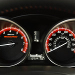 Look between the tachometer and speedometer and you’ll find a boost gauge. It’s simple yet effective, and it comes standard in the MAZDASPEED3. But on the flip side, it’s impossible to see when you’re approaching the redline, as the whole tach cluster surround is red!