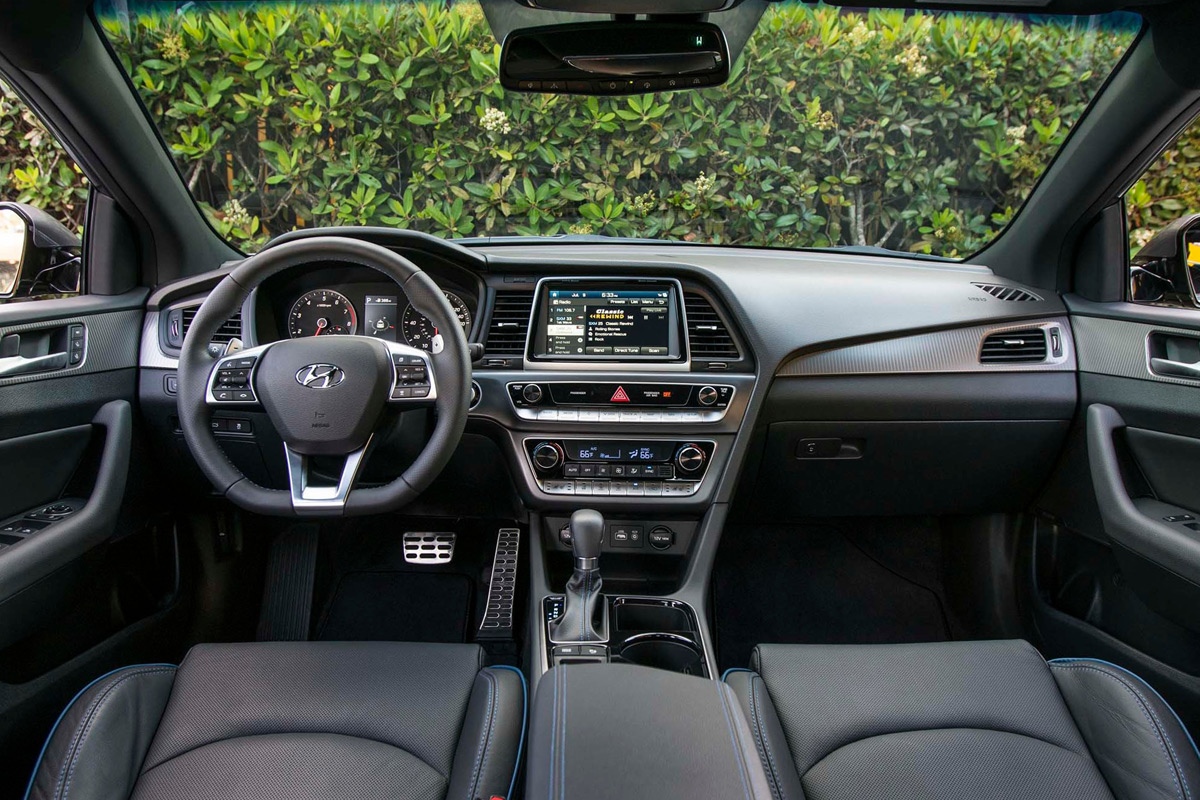 A new three-spoke steering wheel is fitted to the Sonata to emphasize a driver-centric feel for the cabin. The dashboard and center console have been reworked to make them less bulky and more modern. Seating is very comfortable with a lot of creature comforts available to add to that. The rear bench can seat three across and has excellent outboard positions with plenty of head and legroom despite the sloped roofline and smaller appearance of the rear doors.