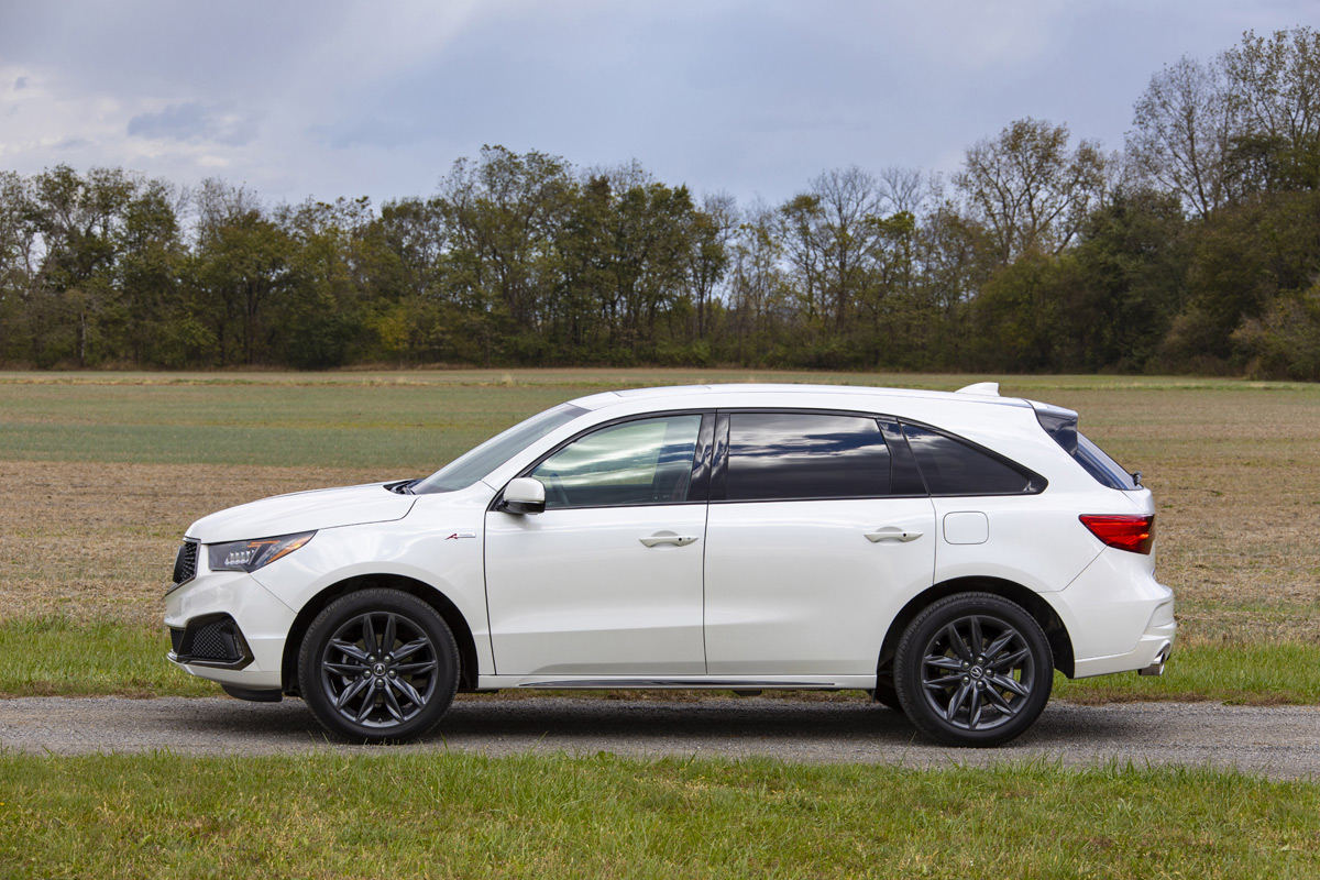 The 2019 Acura MDX A-Spec package slots above the Technology package trim, which comes with 20-inch wheels, remote engine start, navigation, 10-speaker premium audio system, auto wipers, and a host of other luxury and convenience items. The A-Spec adds to that with wider wheels and tires for better traction and handling, blacked-out exterior trim, a thicker steering wheel for a more robust drive feel, and ventilated front seats.