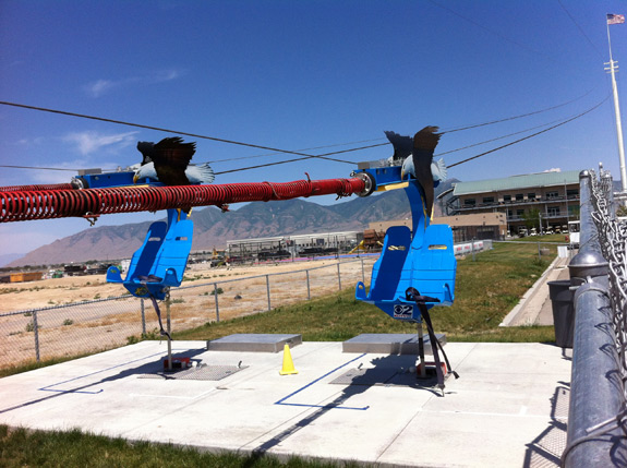 After that, we went over to the zip line. The zip line starts by towing a two passenger seat up to the top of the 150 foot tower, then releasing the thrill seekers towards the ground along 700 feet of fun filled excitement. It is the first electromagnetic zip line in the state. You’ll hit about 40mph on the way down.
