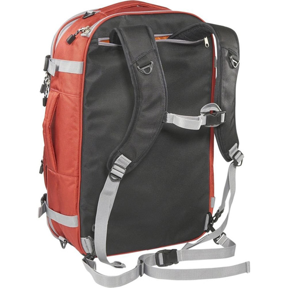 Don’t be fooled by the seemingly normal appearance of this “backpack”, as it’s looks can be deceiving. The TLS Weekender Convertible is amazingly roomy, and it’s loaded with smart features: Adjustable laptop storage, expandable compartments, contoured airmesh backpack straps, travel organizer, fold-down shelf, etc.