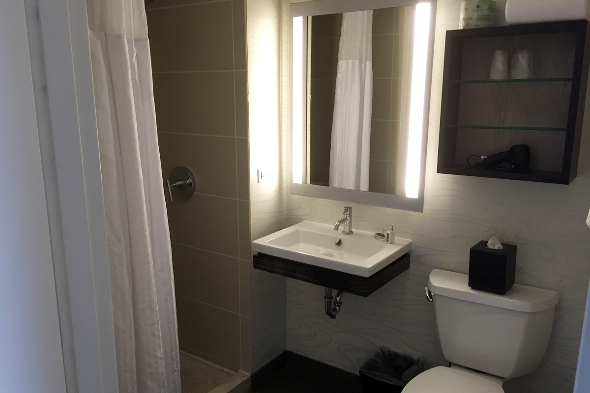 The bathroom was reasonably sized as well, with a walk-in shower (no tub) that had plenty of water pressure (despite being low-flow). The rainfall showerhead was a big plus in my book, and my wife liked the fact that they provided L’Occitane bathroom toiletries.