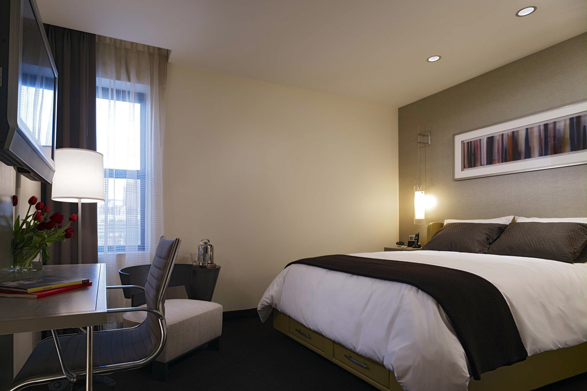 The bed was nice and comfy, the free WiFi was strong, and the contemporary décor was inviting. And best of all, the room was really quiet, with no street noise or anything to wake us up. What more could you ask for?