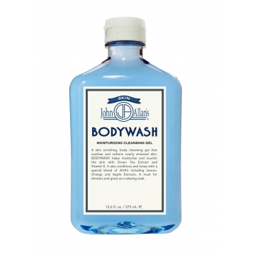 John Allan’s Bodywash is a skin enriching, body cleansing gel that soothes and softens overly stressed skin. Green Tea Extract and Vitamin E work together to gently cleanse and moisturize while a special Alpha Hydroxy Acid blend of Lemon, Orange and Apple Extracts smoothes and tones the skin.