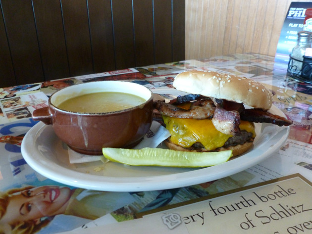Since the Philly Tap & Tavern is known for their burgers (offering everything from a regular classic burger to a gourmet burger made with Kobe beef), we had to try one of them. We went with the Cheddar Bacon burger, a massive half-pound burger served with cheddar cheese and thick slab bacon. It comes with a side of fries or cup of soup, and it’ll run you $13.50.
