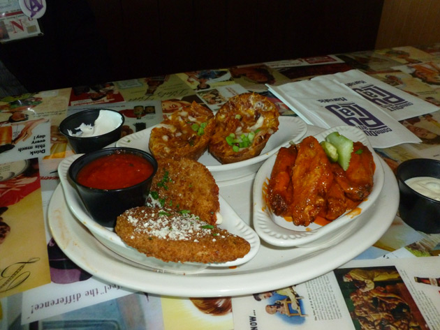 The appetizers all sounded so good, it was hard to decide what to order. So we went with the T&T Special Sampler, getting the Signature Fried Wings, Bacon Stuffed Potato Skins, and Mozza-Luna’s (mozzarella sticks). Wings are offered twice fried, classic, or boneless, with your choice of naked, hot, mild, honey BBQ, sweet chili, or garlic parmesan. We went with traditional classic mild wings, and they were delicious! The potato skins and mozza-luna’s were also great, you really can’t go wrong with any of these appetizer choices.
