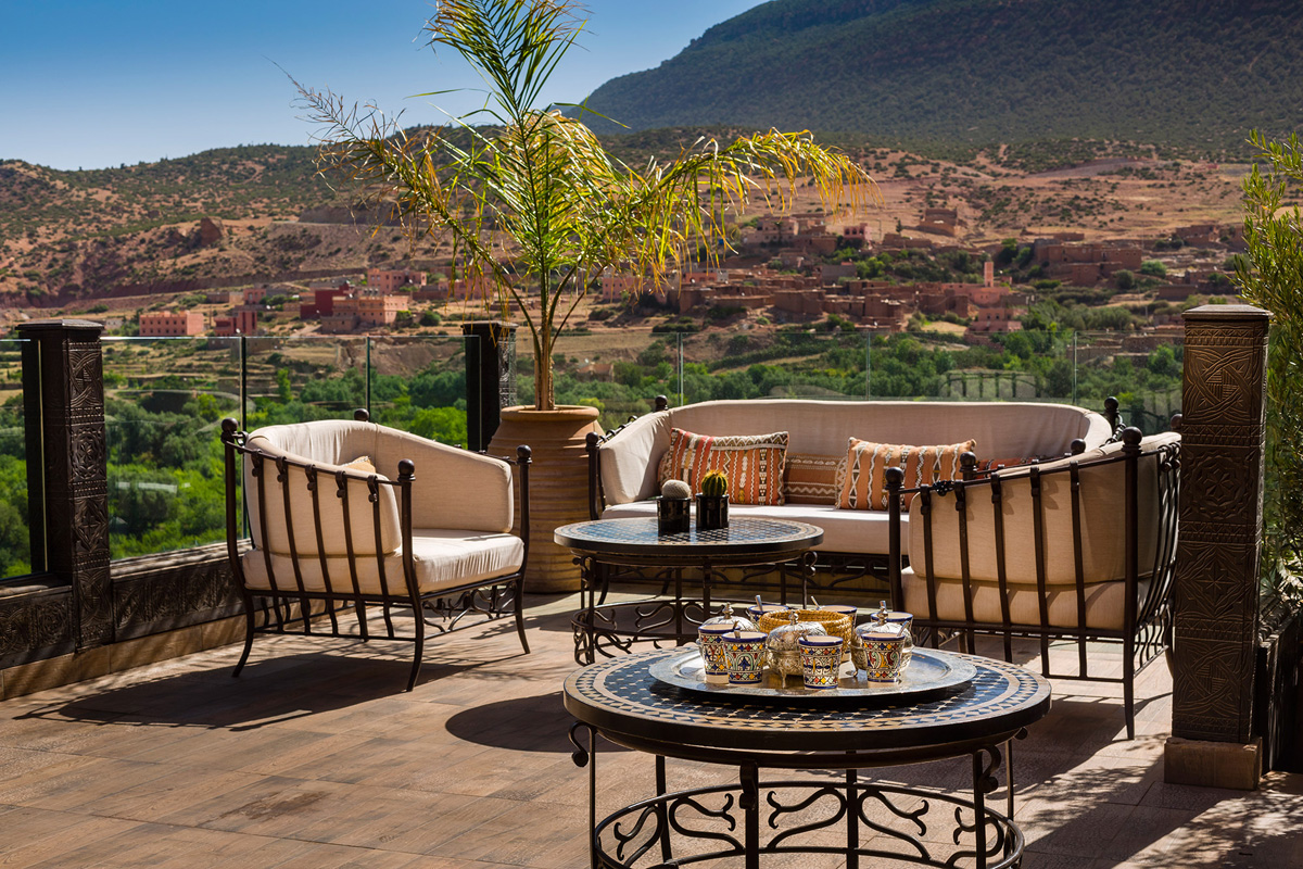Situated in the spectacular Atlas Mountains in Morocco, the award-winning Kasbah Tamadot was bought by Sir Richard Branson during one of his famous ballooning expeditions. Each of the 28 rooms and suites has been individually decorated to reflect the beautiful architecture of the building and features antiques from all over the world.