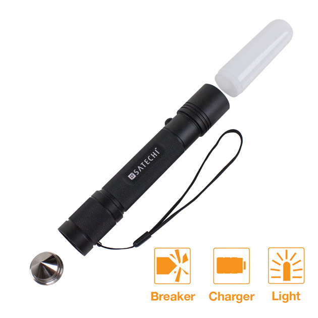 In case of emergency, the LightMate’s alloy steel tip can be used as a glass breaker allowing a passenger to break a window and escape from a vehicle. Additionally, the waterproof flashlight can withstand heavy rain and even being submerged.