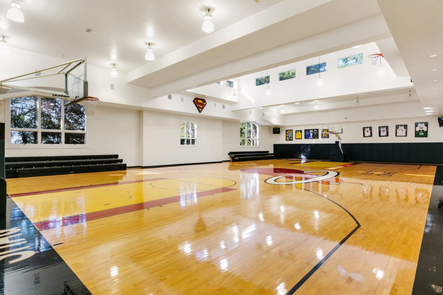 A separate wing houses the master suite with a private balcony, four-room master closet, and his-and-her master baths with vanity sinks and jetted showers. Other features include a soundproof home theater (so you can watch Kazaam at full blast), a temperature-controlled cedar-planked humidor, a game room, wet bar, a 95-foot long swimming pool, and naturally a 6,000-square-foot indoor basketball court.