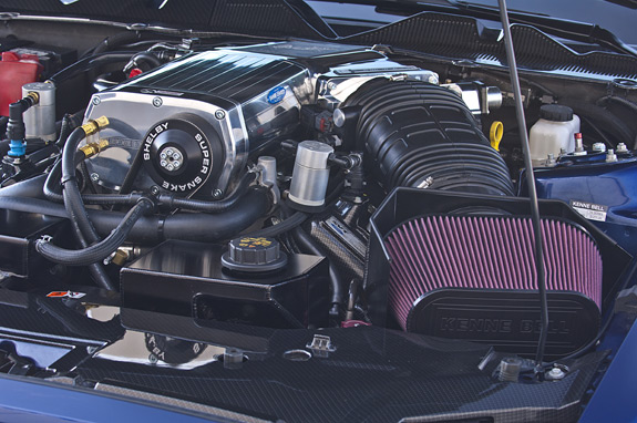 “We didn’t simply turn up the boost to get this level of horsepower,” explained Gil Navarrez, Shelby American’s Speed Shop director. “We took the serious hot rod approach by taking Ford’s 5.4 liter engine down to the block, and beefed up the internals by machining it for new rods, crank and pistons. We also flowed the heads, revamped the cooling and improved the exhaust. With a choice of a Kenne- Bell 3.6 liter or the new Whipple 4.0 liter supercharger and tune, it will crank out serious power all day long.”
