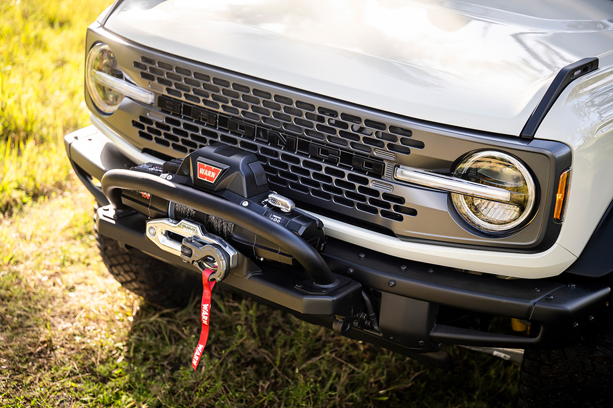 For situations when Bronco Everglades or another vehicle needs extra traction beyond what the tires and engine can provide, a heavy-duty modular front bumper by Ford Performance with ZEON 10-S WARN winch – featuring 10,000-pound capability and a 100-foot synthetic line – is ready to help.