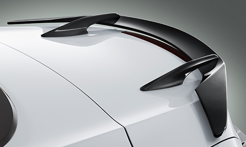 The front spoiler adds downforce, while lowering the front clearance by 30mm. The side skirts reduce the amount of wind flowing to the rear tires, delivering better fuel economy and less wind noise. The rear diffuser adds moderate downforce, and either of the rear spoilers are said to improve driving stability at speed.