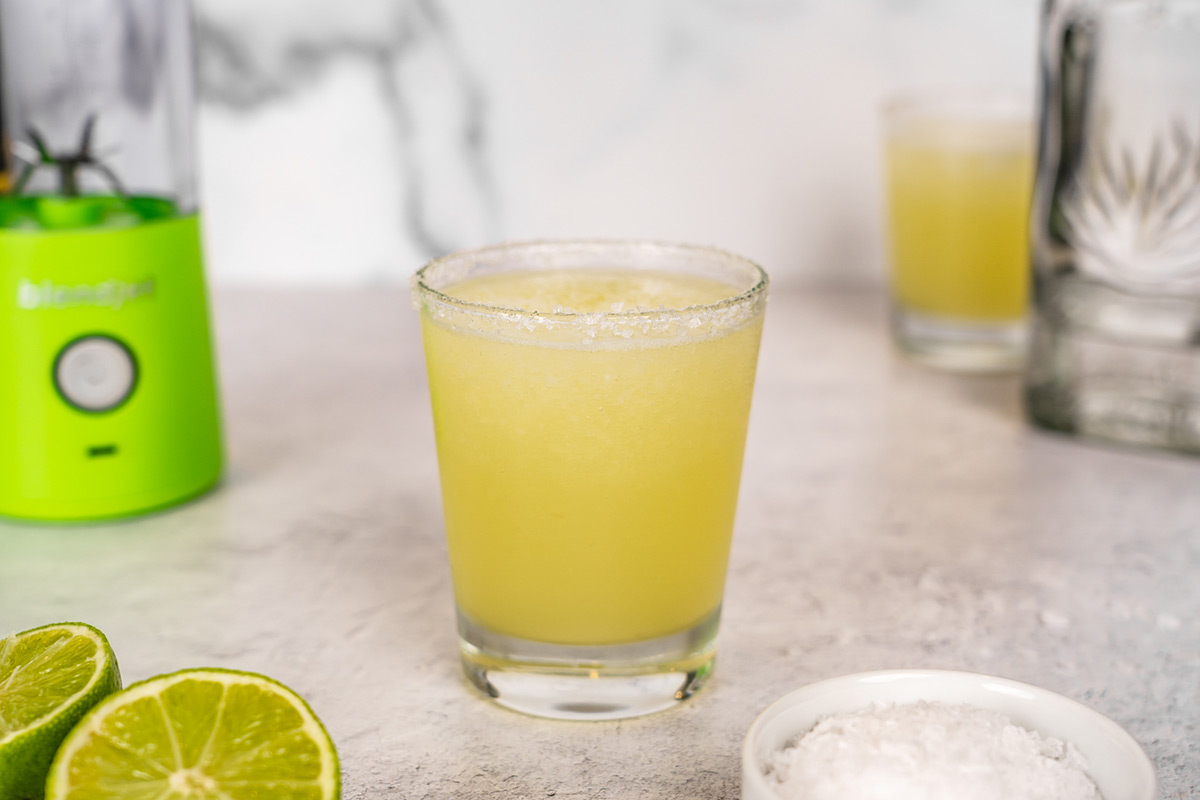 Add tequila, lime juice, triple sec, and agave to the BlendJet. Add ice until the liquid floats to the top. Blend for 1 cycle.