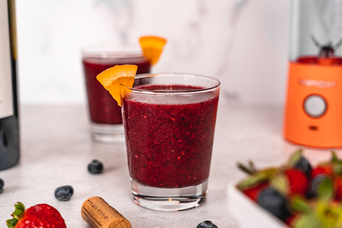 Add red wine, orange liqueur, lime juice, and maple syrup to the BlendJet. Add frozen berries until the liquid floats to the top. Blend for 1 cycle.