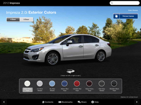 Subaru has unveiled new dynamic brochures for it’s 2012 model year vehicles. These dynamic brochures build on the industry-leading program that Subaru debuted in 2011. Each dynamic brochure features new, 360-degree interactive interior and exterior views that allow users to experiment with paint colors and interior trim.