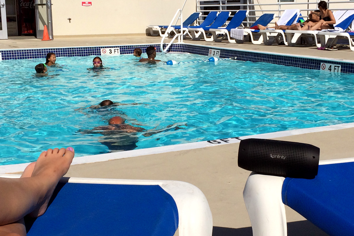 We kicked things off Saturday with a little pool party at the hotel. I pulled up my favorite Spotify playlist, fired up the Infinity One, and one of my buddies yelled “Holy Boom!” when he heard it. It’s safe to say that this little sucker packs quite a punch! It didn’t take long for the rest of the hotel guests to join in the fun, and we all had a great time. In fact, one couple even came up and asked us where they could buy the Infinity One, because they were so impressed by it’s sound quality and easy portability.
