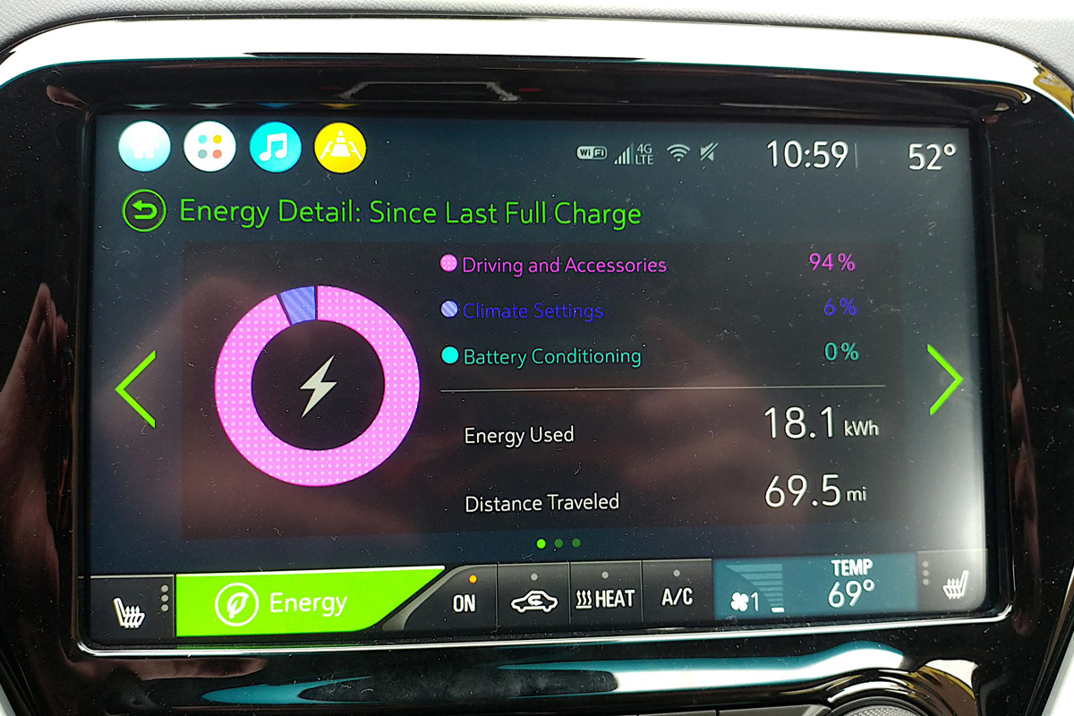 The large infotainment screen in the 2020 Bolt EV gives you all the connectivity you could ask for. Which it should, since it works off of your phone. Navigation is phone-based, as are most streaming and other services. Nice since that means if anything gets outdated, it’s your $800 phone, not your $40,000 car. Even better, the infotainment’s brains are instead focused on the car itself. Every use metric and chart you can imagine can be called up to gamify your EV usage and charging options.
