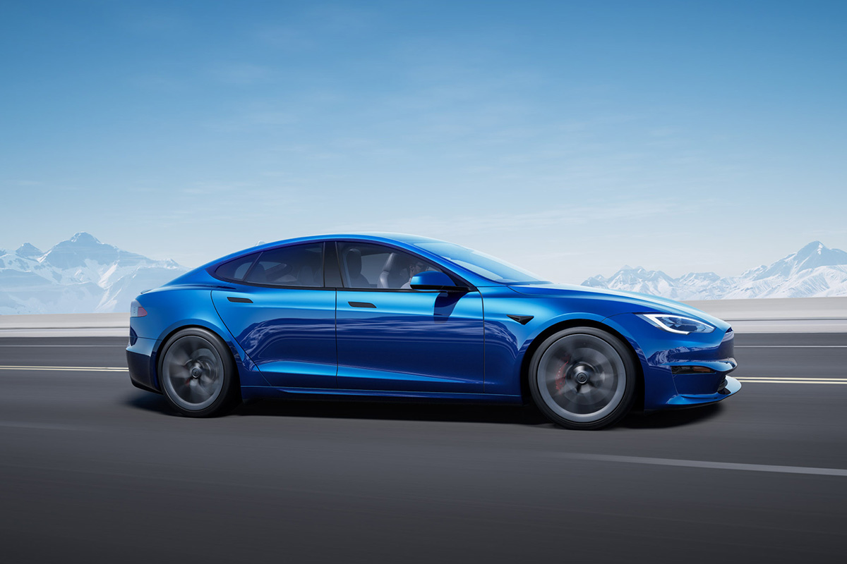 The Long Range version has two motors and all-wheel drive, with Tesla a 0-60 time of 3.1s, a 155-mph top speed, and a range of 412 miles. Move up to the more powerful Plaid powertrain, and the 0-60 time drops down to 1.99s, top speed raises to 200-mph, and range drops ever so slightly to 390 miles.