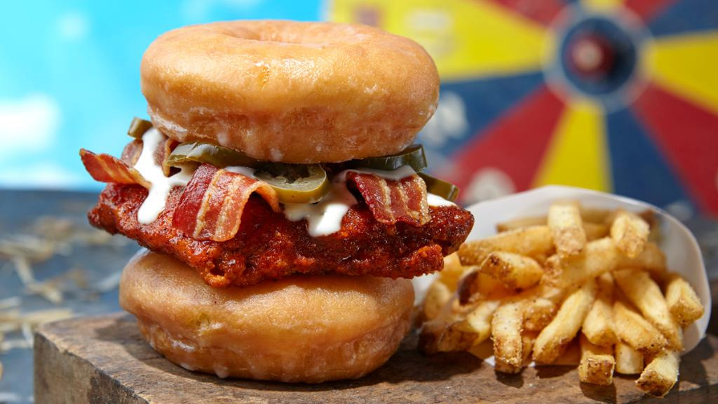 - Big Top Burger & Sandwiches: Whiskey-Glazed Donut Burger, Oooey Gooey Mozz Stick Melter and the Flaming Donut Chicken Sandwich