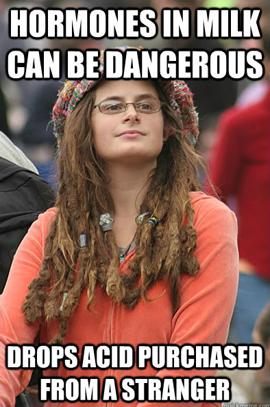 Featuring a hippie college student complete with dreadlocks and a knitted cap, College Liberal depicts a naive, hypocritical college activist with captions like, "I'm against discrimination of any type/listens to rap music with lyrics about abusing women." It's believed that this meme was created in response to College Republican and is a continuation of Liberal Douche Garofalo. College Liberal got started over Christmas break on Quickmeme, but it really took off when it hit Reddit, featuring a caption of "We need to love and respect all cultures and religions/except Christianity," earning front-page status and more than 7,000 up votes within the span of a week. College Liberal's Quickmeme page has more than 4,000 submissions and is also known as Bad Argument Hippie on Memebase.