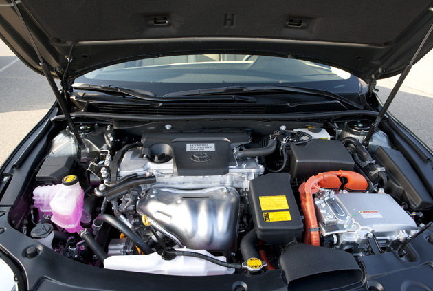The 2014 Toyota Avalon Hybrid offers a quiet, comfortable ride. The engine makes little noise and seems undersized for the car, at only 2.5 liters in its four-cylinder configuration. It’s accompanied by Hybrid Synergy Drive, however, adding a 32kW motor and a continuously variable transmission (CVT). Together, the engine and transmission produce 200 horsepower, which is ample for a car this size. At no time will you feel it’s underpowered thanks to the low-end torque provided by the motor.