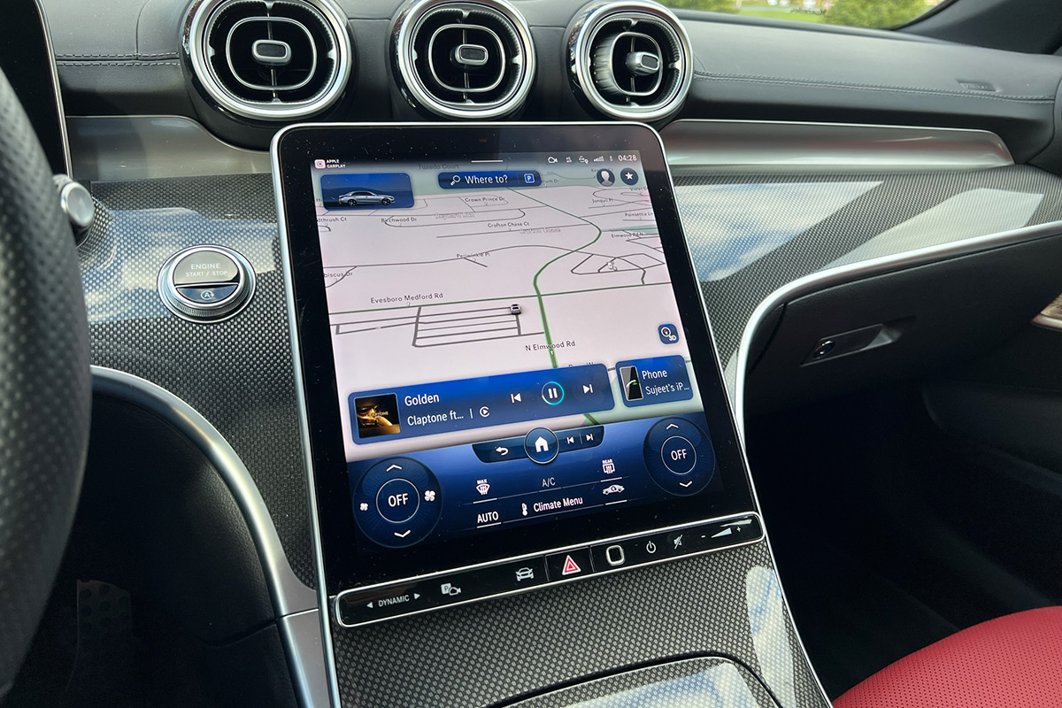 A 9-speed automatic transmission coupled with the 4MATIC drive system delivers power to all four wheels fast and efficiently, and I found the car to deliver amazing grip in the rain, even with the aggressive Goodyear Eagle F1 summer tires that came on our car.