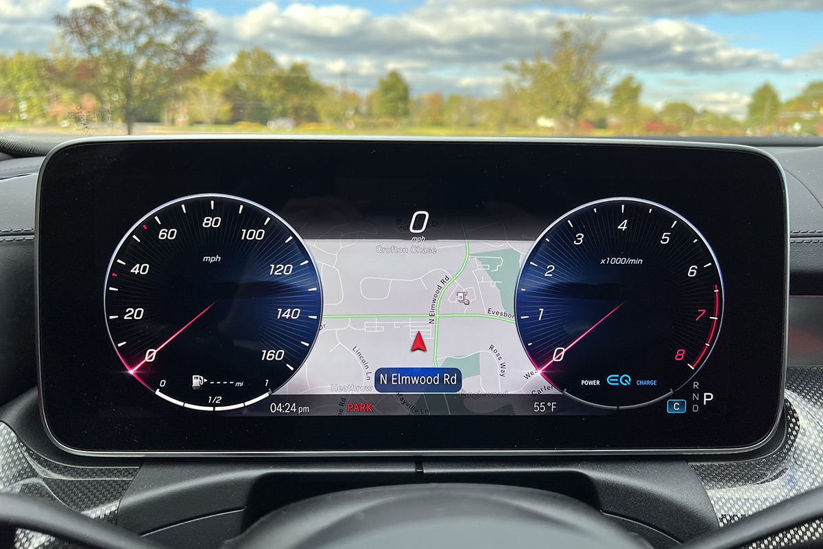 Otherwise, I’m a big fan of the MBUX infotainment system. Our car had Augmented Video for Navigation, and it’s one of the coolest things I’ve used. A camera registers the surroundings in front of the vehicle and moving images are shown on the center display, with direction arrows, traffic signs, and other things superimposed on the video image. Game changer!