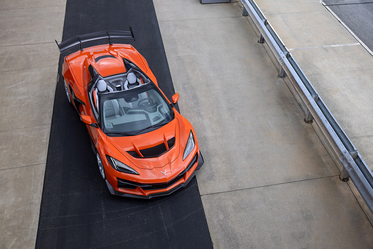 Customers can equip the high-downforce Carbon Aero package to a standard chassis ZR1X, adding dive planes, underbody strakes, a hood gurney lip over the front heat extractor and a highly effective rear wing. This package is capable of 1,200 lbs of downforce at top speed and comes standard on ZTK-equipped cars.