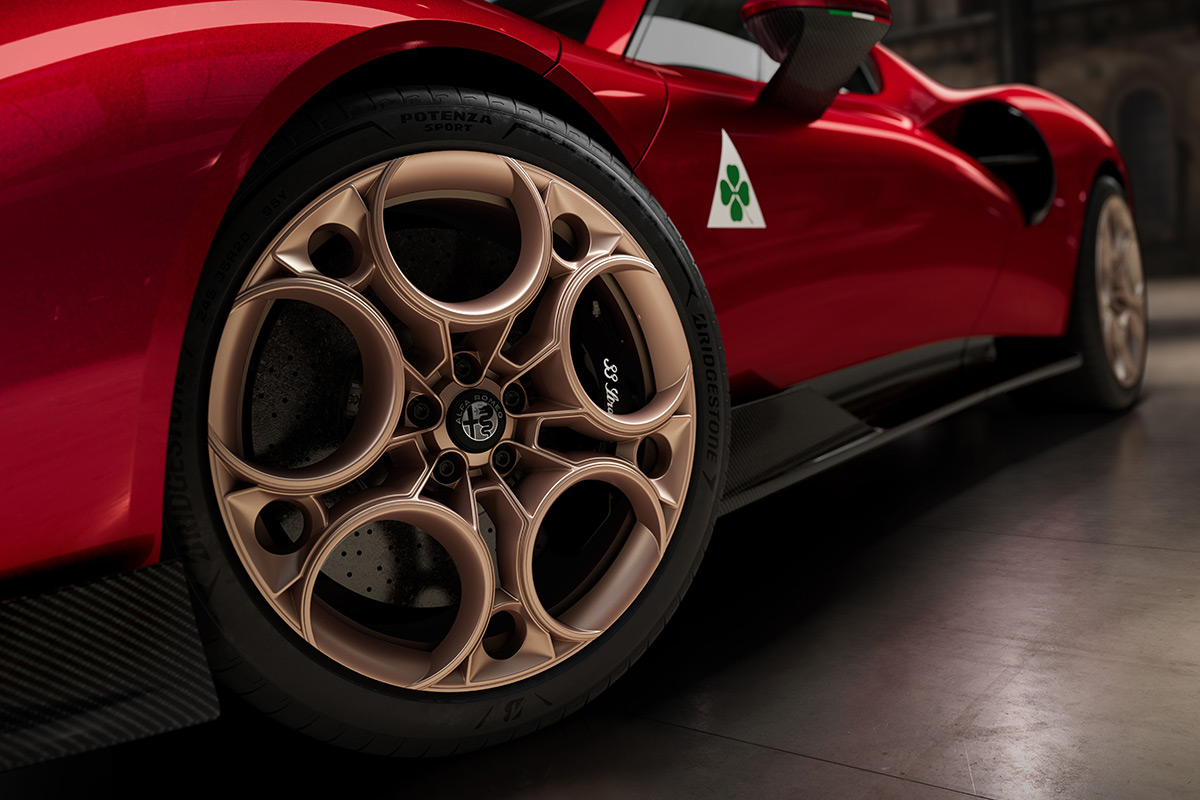 Only 33 units will be produced, via a dedicated program that has enabled customers to develop functional stylistic elements together with the Alfa Romeo team: air intakes, wheels and even the distinctive front shield. Therefore, no two cars will be the same. Each is a masterpiece on four wheels, becoming part of Alfa Romeo history. The exclusivity continues in the registration process, which enables customers to personally assign the chassis number. The specific VIN includes eight digits chosen by the customer and also is marked on the central tunnel. For the consolidated experience in the field of exclusive tailor-made automobiles, Alfa Romeo will employ the craftsmanship of the Carrozzeria Touring Superleggera to construct the cars. Tailor-made quality standards are therefore ensured, with obsessive attention to detail.