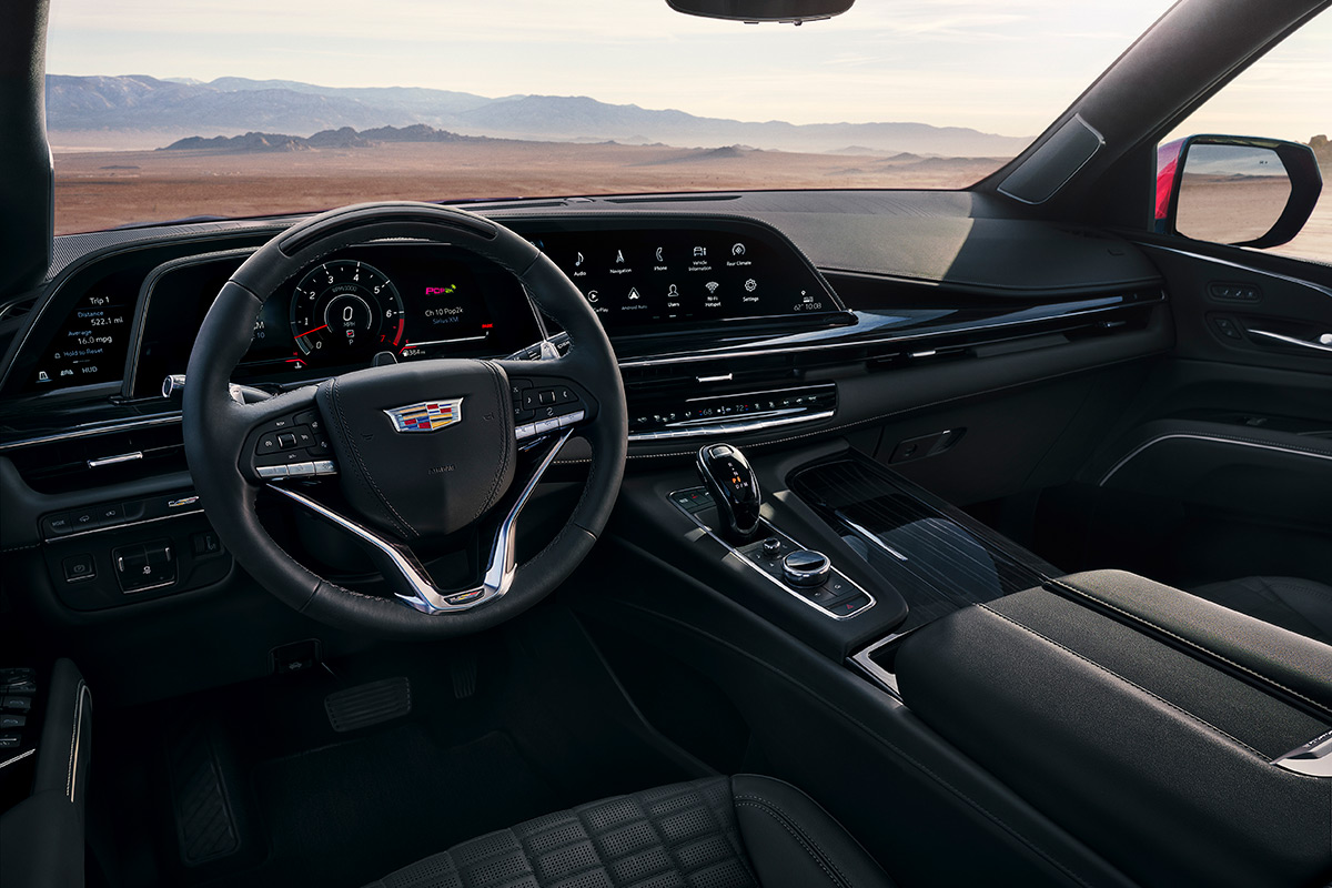 - Escalade’s signature curved OLED with 38 inches of total diagonal display