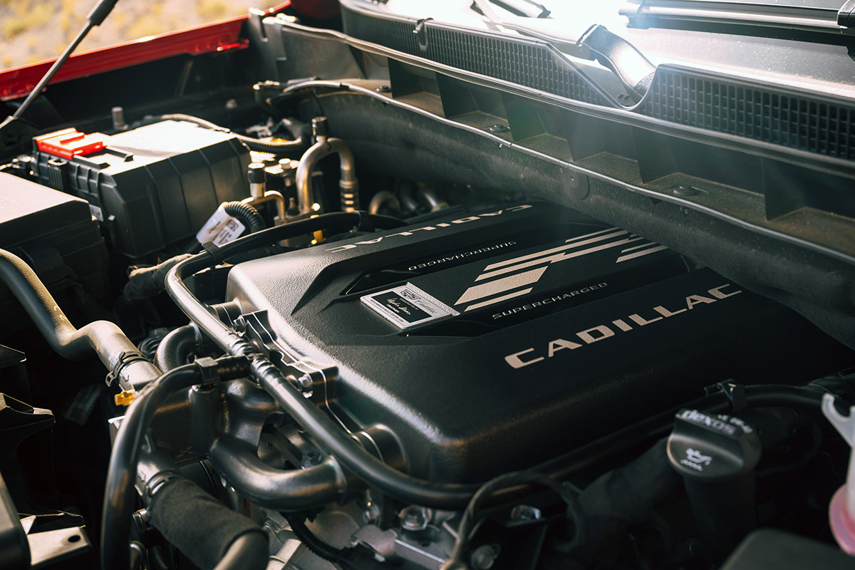 Rated at a GM-estimated 682 horsepower at 6,000 engine rpm and 653 lb-ft of torque at 4,400 engine rpm, the Escalade-V’s 6.2L hand-built supercharged and intercooled engine builds on a legacy of supercharged V-8 engines offered in Cadillac V-Series models, those being the second- and third-generation CTS-V models, the XLR-V, and the new CT5-V Blackwing.