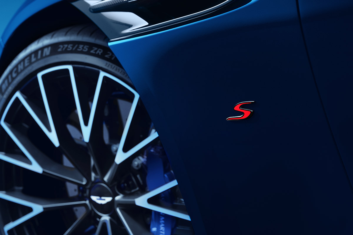 Moving to the flanks, DB12 S features gloss black sill additions. These continue the line formed by the new front splitter, further enhancing the ground-hugging stance. DB12 S also continues the tradition of carrying S badges in key locations. Specifically, on the fenders just below each side strake. Featuring a hand-made, in either bright or dark chrome, forged ‘S’ badge completed with red glass enamel, it is a discreet but enduring mark of performance.