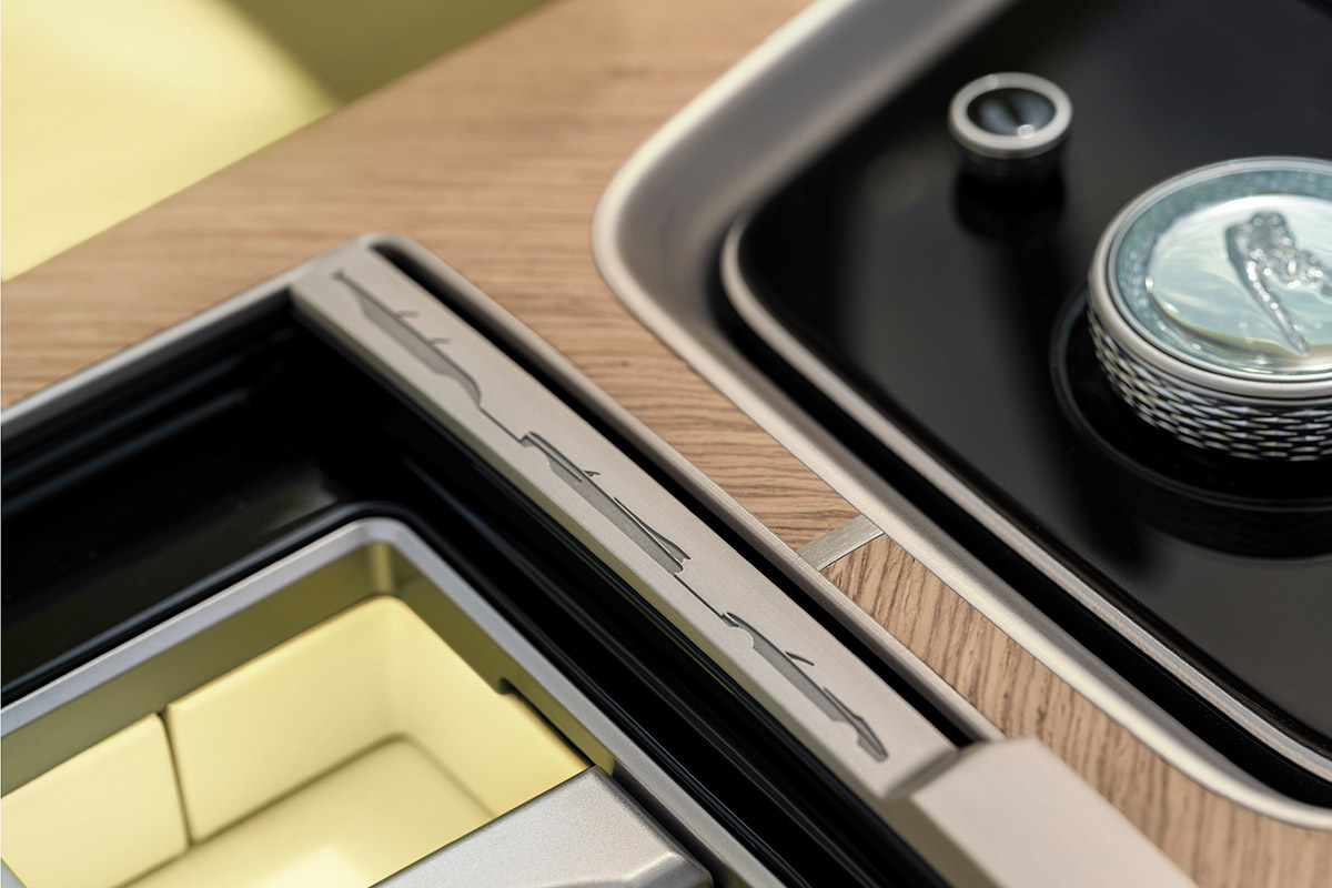SOLLEI also caters to bird-watching connoisseurs with a unique interior accessory. A custom brushed metal and leather-wrapped case houses 3D printed acrylic bird calls, a leather-bound journal with hand painted bird illustrations and a leather tool roll for pens and pencils, made to custom match the vehicle interior, allowing enthusiasts to capture their bird-watching experiences.