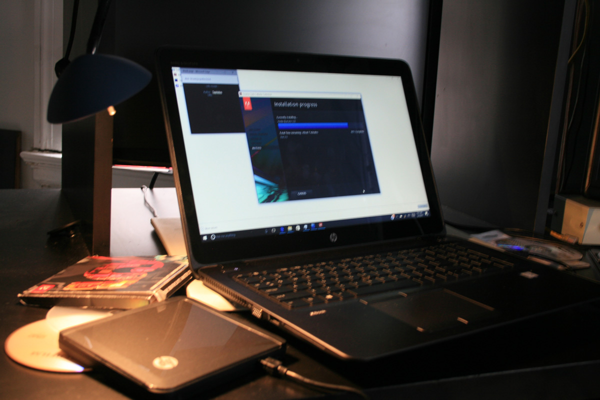 The next day I received an outboard DVD drive from HP to upload all the high end applications that still install with DVDs. I had no problem running Lightwave, Premiere, After Effects and Photoshop simultaneously. When you consider the fact that a DVD adds to weight and thickness, I think the outboard device is a pretty reasonable option, since one only needs it for entertainment and software installation.