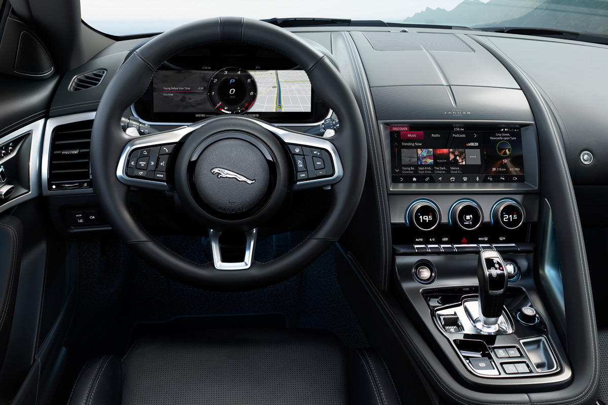 The responsive, intuitive Touch Pro infotainment system’s 10-inch touchscreen, matched to 3 tactile rotary controllers, offers the perfect balance of analogue and digital driver controls. In addition, the F-TYPE features Apple CarPlay & Android Auto as standard, along with software-over-the-air functionality, so future software updates can be made at the owner’s convenience without having to visit a dealership.