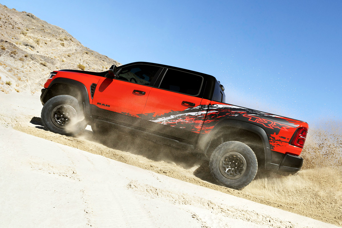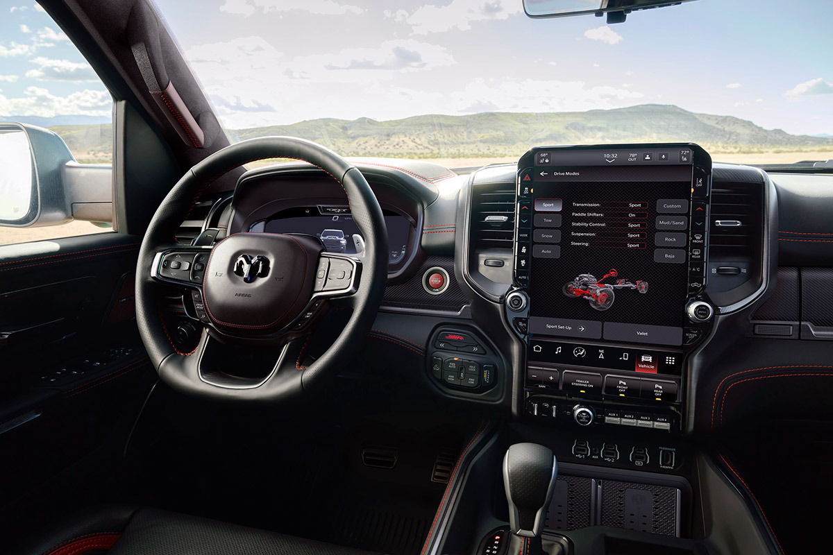 Despite being a desert-running beast, the new TRX doesn’t skimp on technology. It features a massive 14.5-inch Uconnect touchscreen (the largest in its class) paired with a 12.3-inch digital instrument cluster and a Head-Up Display with a 10-inch field of view.