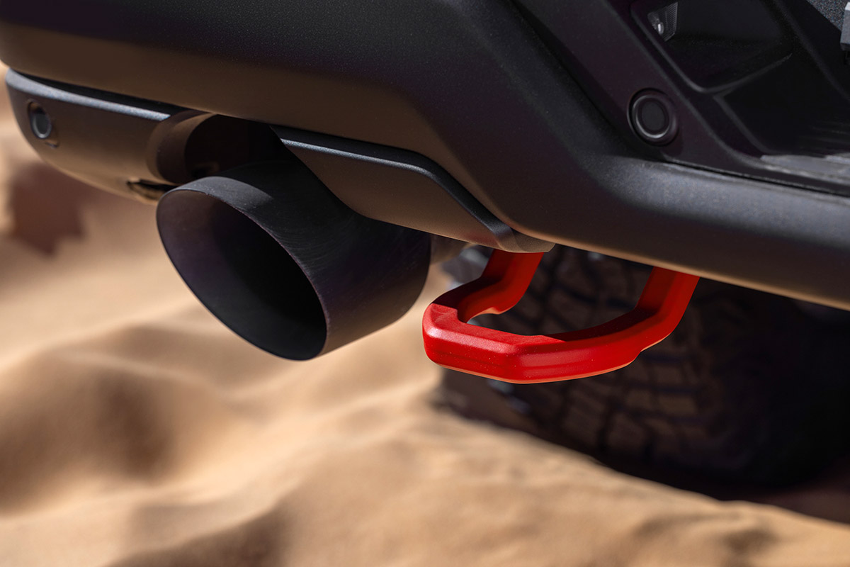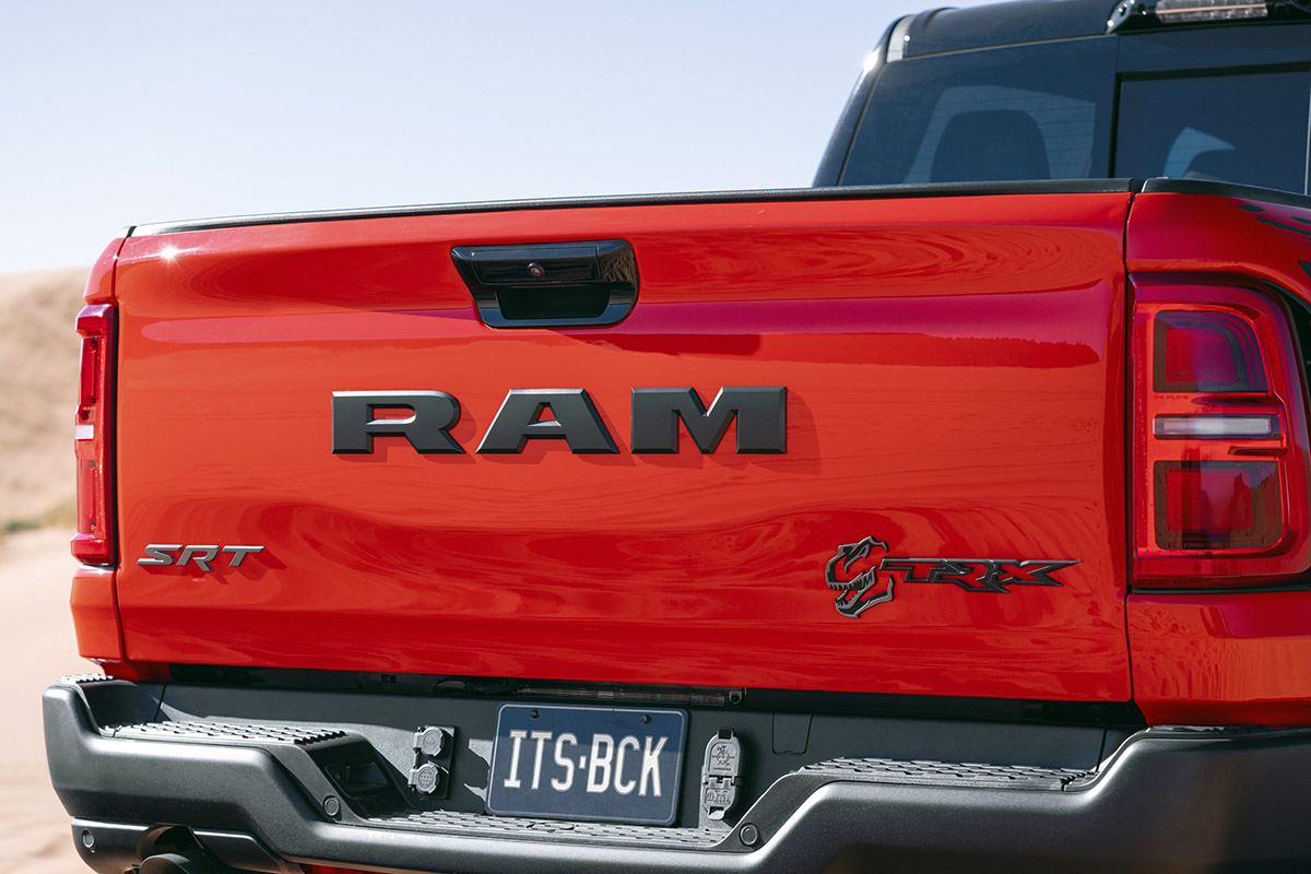 The TRX rides on second-generation Bilstein Black Hawk e2 adaptive shocks that continuously adjust damping forces for different terrain. Ram’s Active Terrain Dynamics system works in tandem with these shocks, even anticipating mid-air conditions to adjust for a composed landing after jumps.