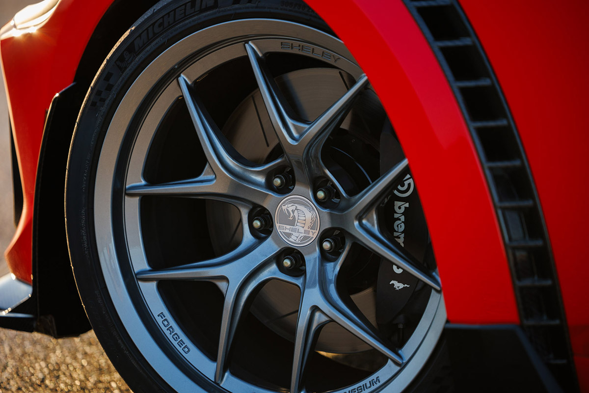 Even with all the performance upgrades, the Super Snake-R weighs only 4,004 pounds, just 116 more than the Mustang Dark Horse it’s based on. That’s thanks to Shelby’s liberal use of carbon fiber and lightweight magnesium alloy throughout the build.