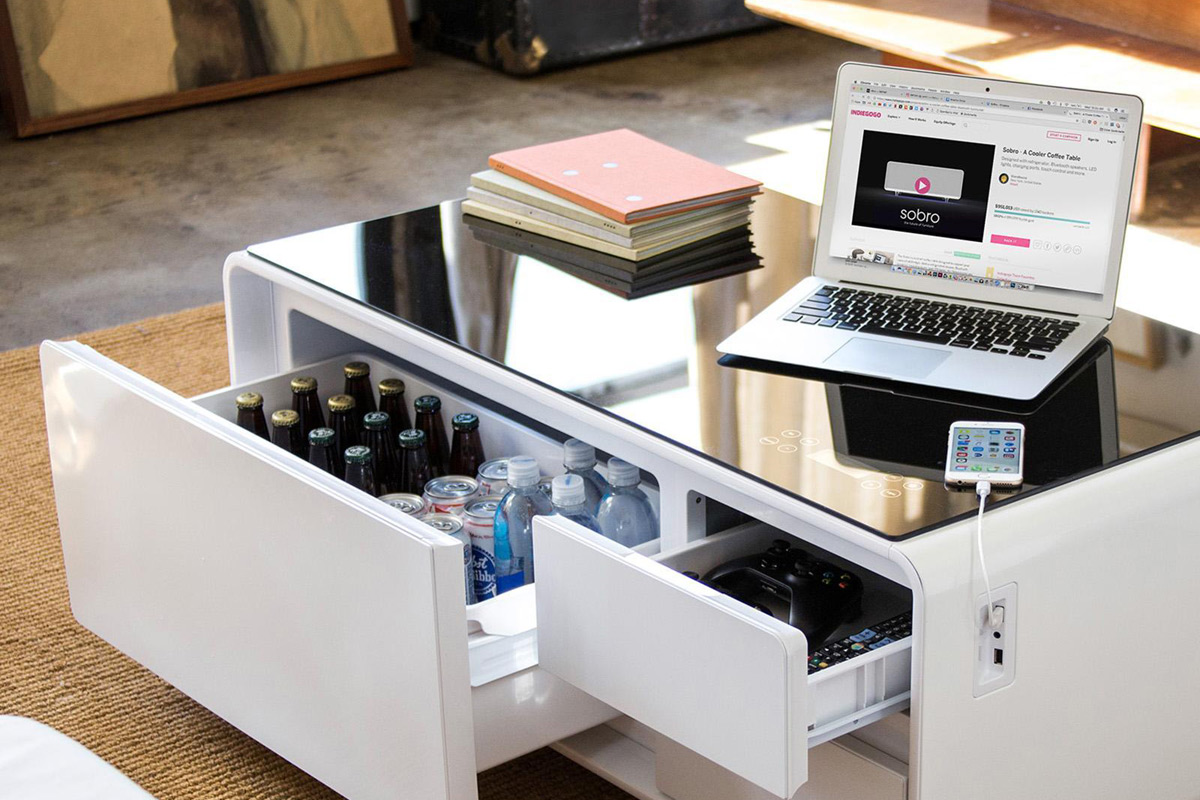 Back in 2017, we told you about the Sobro Smart Coffee Table, a high-tech coffee table with a built-in refrigerator drawer that can hold up to 32 drinks, Bluetooth-enabled speakers, 2 USB charging ports, 4 power outlets, underside LED lights, and touch controls integrated right into the glass surface to control it all.