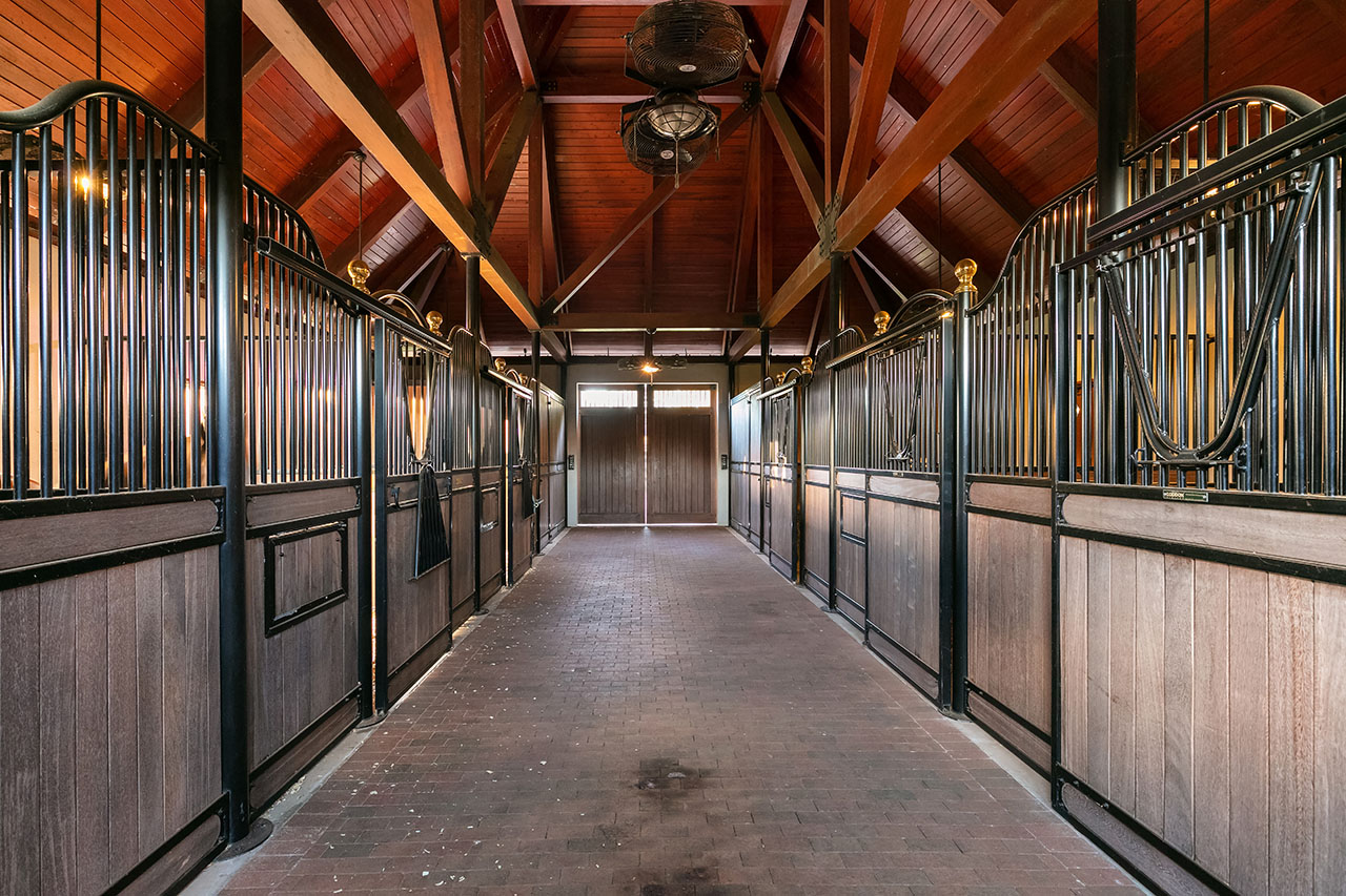 Built for RV sales mogul Don Wallace, this massive 36-acre estate has something for everyone, including 8 bedrooms, 26 bathrooms, indoor and outdoor salt water pools, a two-story guest house, antique collector garage that can hold up to 20 cars, pool house, gatehouse, horse barn with grazing pasture, expansive loggias, 2-story boat house, and a 1-mile jogging trail.