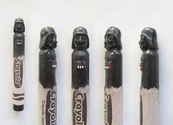 A lot of Tran’s work is inspired by pop culture, and based on the number of Star Wars carvings he’s done, we’re guessing he’s a pretty rabid Star Wars fan. In addition, he also does custom requests. Check out his gallery of Star Wars crayon carvings, and just look at the crazy detail on each of his carvings!