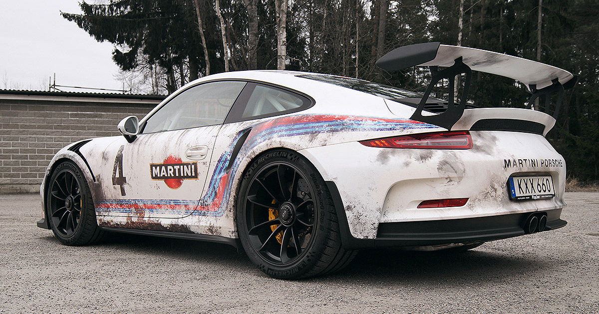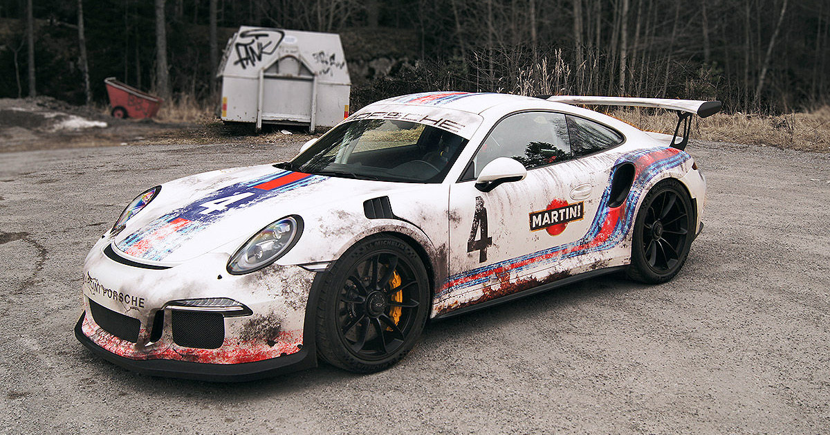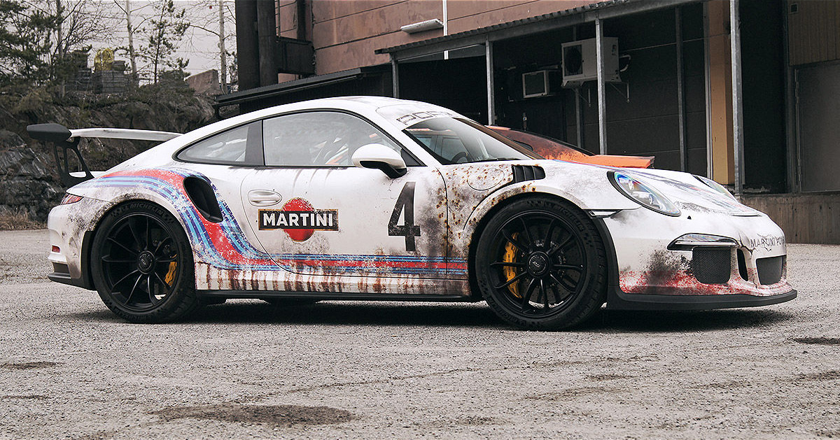 Just when I thought I had seen it all, here comes a new Porsche GT3 RS that’s been wrapped to look like a rusty and worn-out Martini racer that’s seen a few too many racetracks in its days.