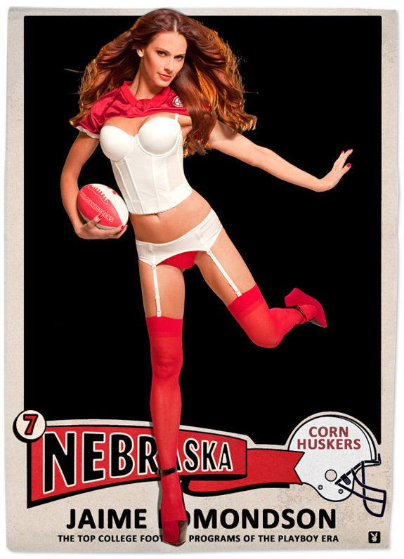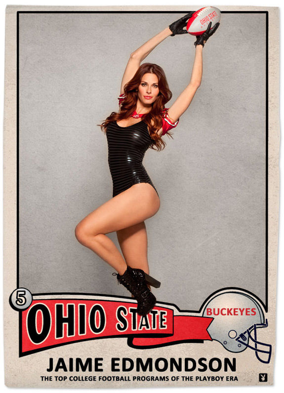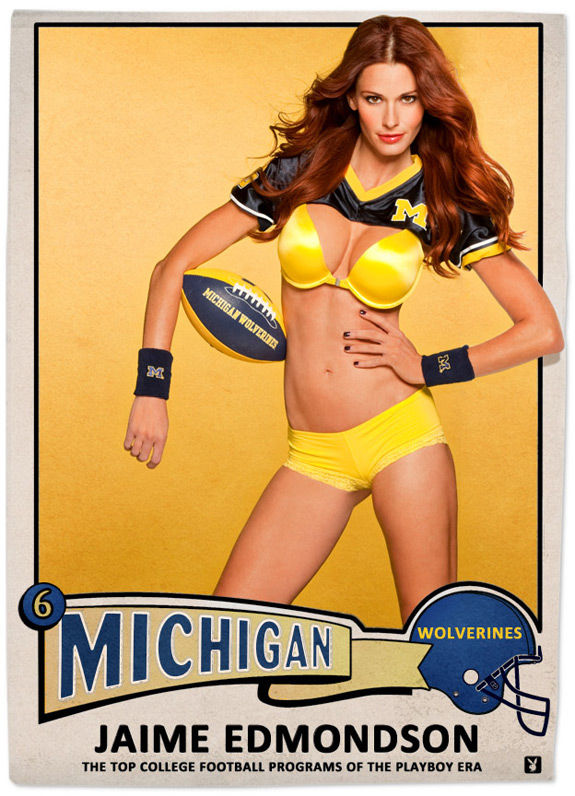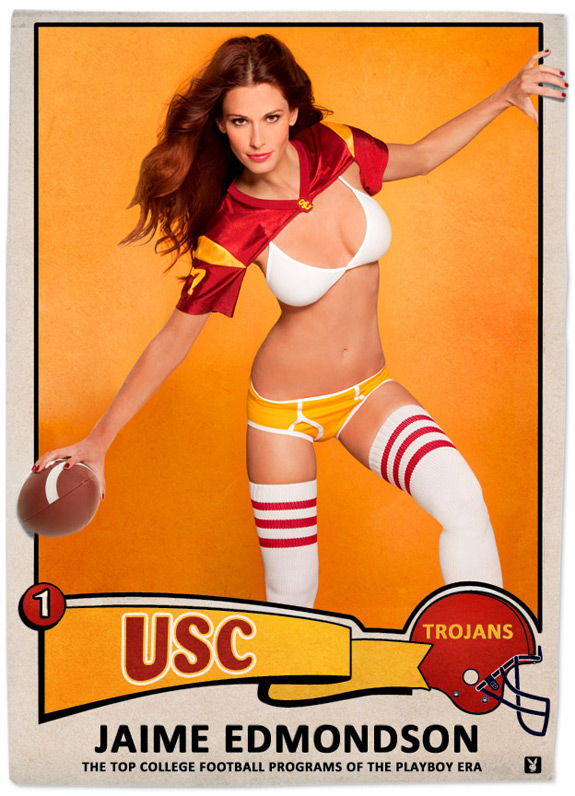And here’s what you guys really care about, Playmate sports guru Jaime Edmondson modeling the top teams’ jerseys: