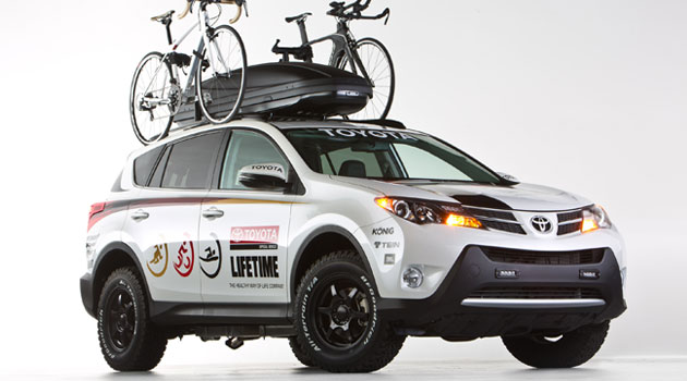 After the elation of a triathlon finish wears off, the wet gear and aching muscles remain. Climb into the LifeTime Fitness RAV4 and kick back. The fitness company teamed up with Team Toyota triathletes Sarah Haskins, Andy Potts and Hunter Kemper to build a 2013 RAV4 with perks that not only soothe tired athletes, but also provide training intelligence. Custom features include a hot water shower with a 5-gallon fresh water tank, a spin dryer and gear storage compartments in the rear cargo area. While the wetsuit drips into the drain, the athlete can enjoy a shiatsu massage in the front seat while reviewing race statistics and tracking data through the integrated iPad.