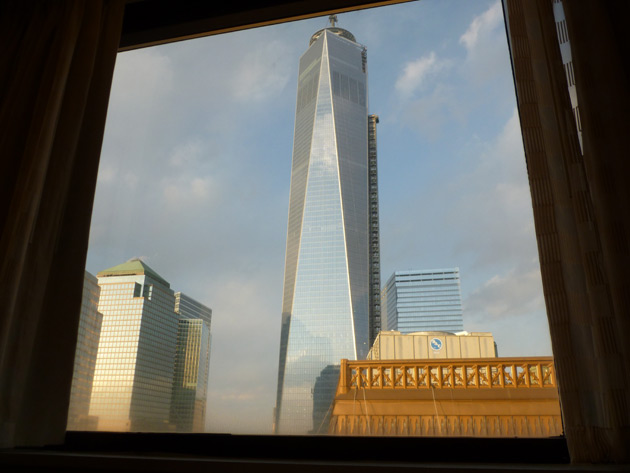 The following morning, we headed down to Bill’s Bar & Burger for some AMAZING pancakes. Afterwards, we got some 9/11 Memorial passes from the front desk (they’re free, just ask), and we made our way across the street to check it out. The museum hasn’t opened yet, but it was cool to see the fountains in person, along with PJD’s 9/11 Tribute Bike from American Choppers, which was on display in the gift shop.