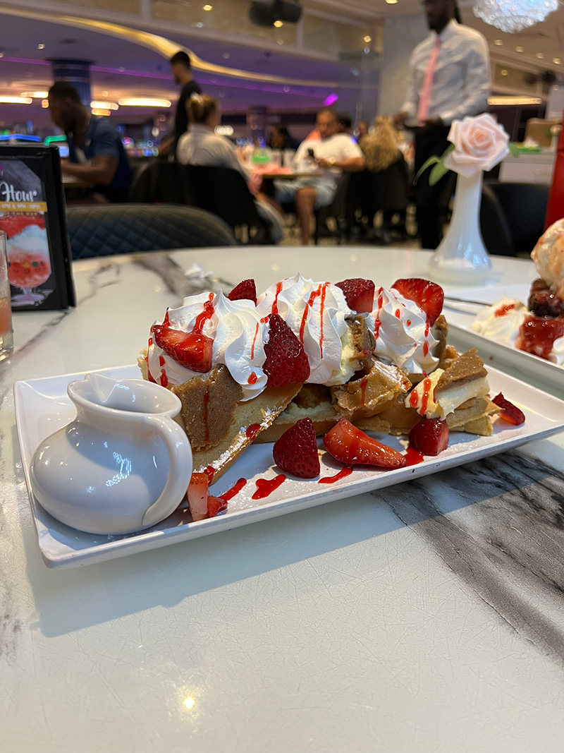 Lastly, for dessert we couldn’t decide between the Strawberry Brownie Shortcake ($18) or the Strawberry Cheesecake Waffle ($21), so we got both. And I’m so glad we did, because both of them were phenomenal! The combination of a warm brownie, strawberry sauce and vanilla ice cream is a classic, and it was freaking delicious. Equally great was their other dessert, warm waffles stuffed with strawberries and NY cheesecake. Super decadent, so good!