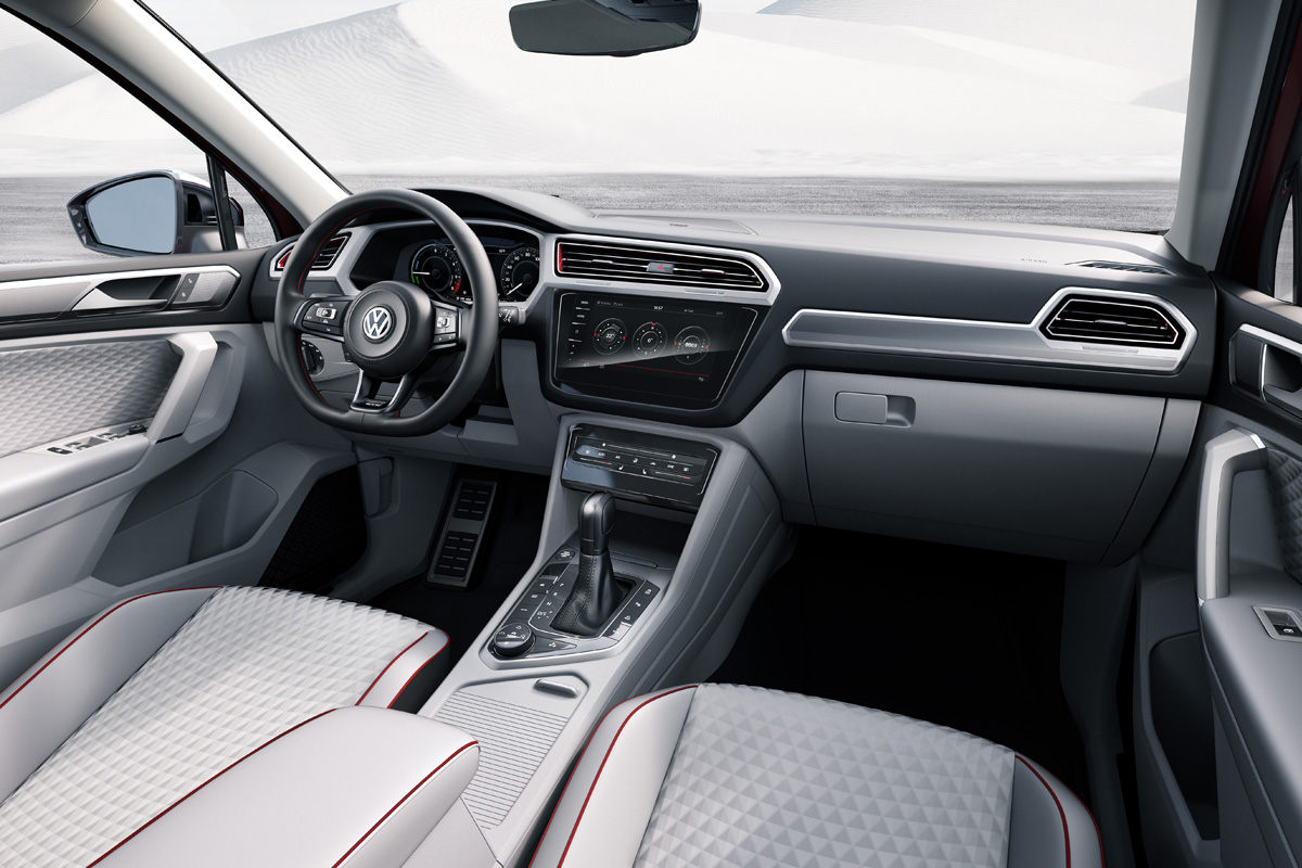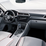 Inside, the Tiguan GTE gets a technical, modern look, with it’s gesture control system front and center as part of the concept’s 9.2-inch LCD screen. A digital Active Info Display resides in front of the driver, and it’s all set off with Dragon Red accents on the dash.