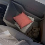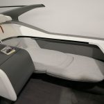 I actually got to try out the sleeper configuration in a prototype for myself, and it was really cool. The seat fully reclines into a bed, with a safety blanket serving to keep you securely in place while you sleep in place of a standard seatbelt. Three spacious drawers hold everything you need (personal belongings, food for the trip, a pillow and blanket). There’s even a sink where you can brush your teeth in the morning, and a table where you can eat breakfast. It’s an interesting alternative to flying for sure!