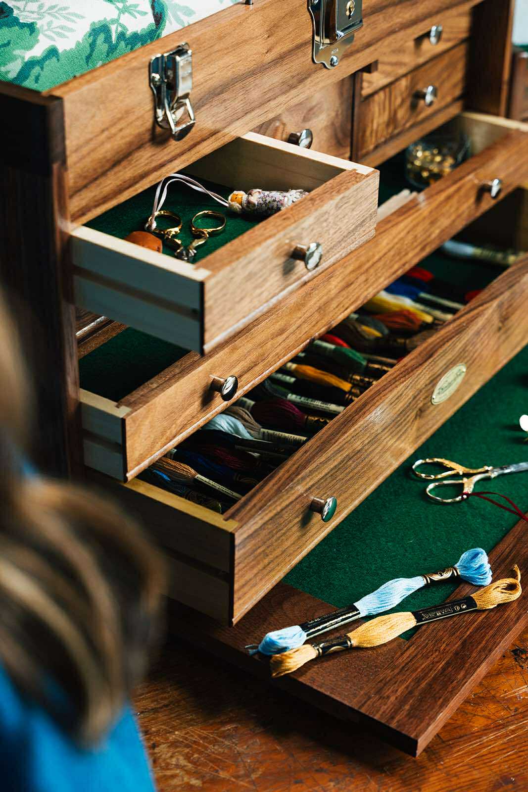 They pioneered details like leatherette-covered chests for portability, drop-front lids to protect drawers, and that diamond-shaped mirror on the inside lid—originally for spotting metal shavings in a machinist’s eye, or so the legend goes.